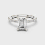 - Center Stone: Emerald Cut Diamond – 7.00 × 5.00 mm
