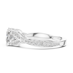 This luxurious engagement ring features a sparkling Radiant-cut center diamond beautifully complemented by two precision Trillion-cut side diamonds, forming a graceful three-stone design that represents past, present & future.