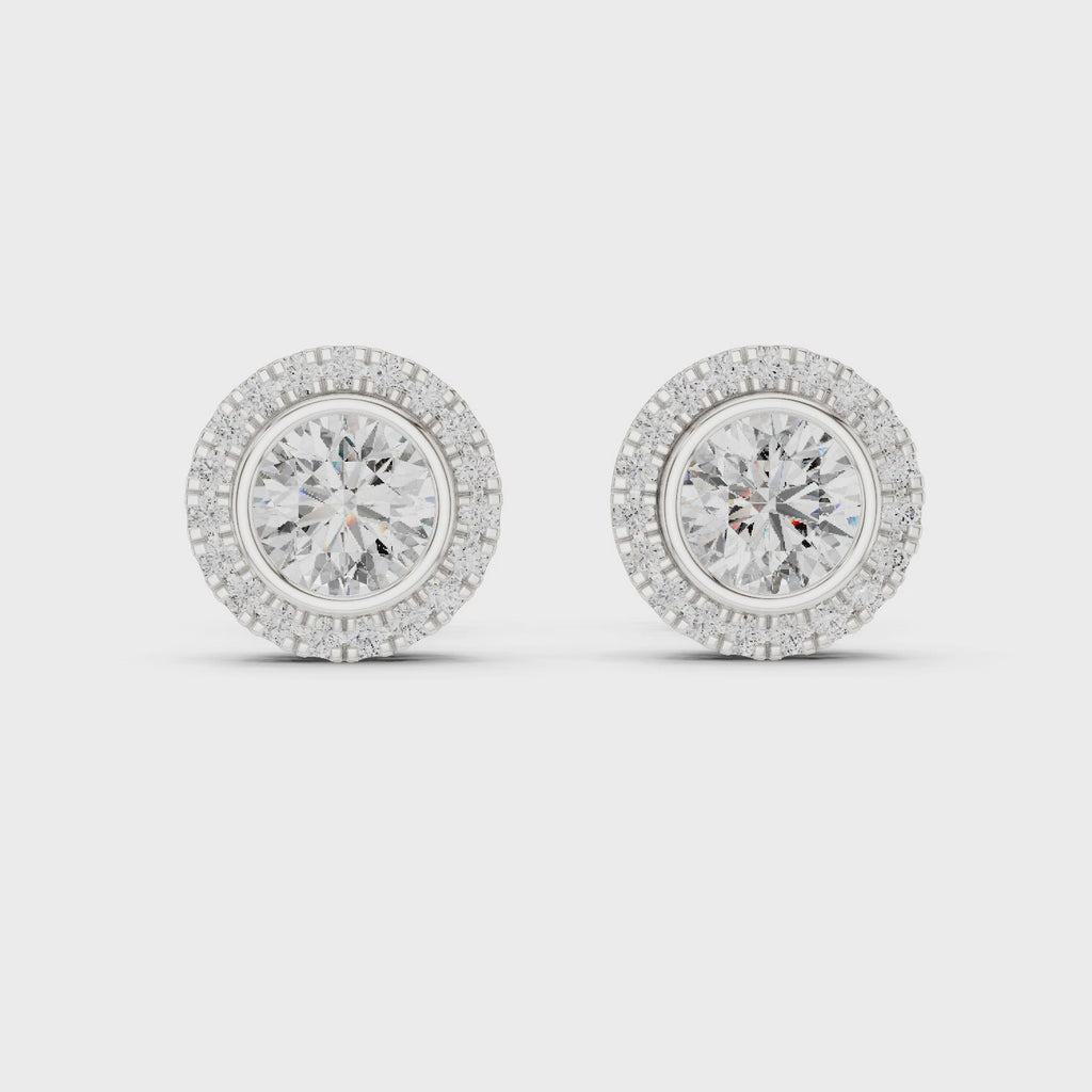 Round Diamond Halo Stud Earrings | Timeless Bridal Radiance