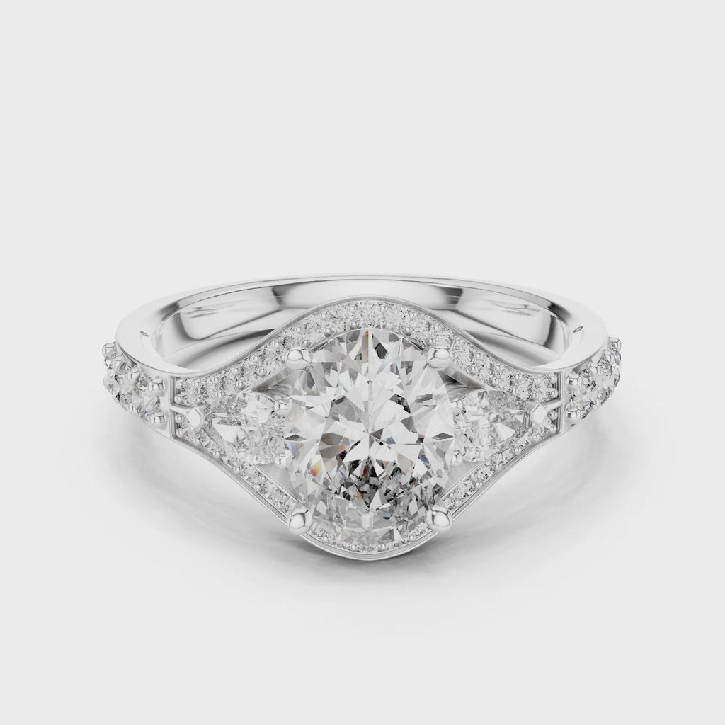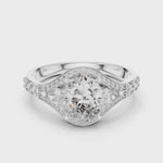 Oval & Pear Halo Pavé Diamond Engagement Ring 0.32 CT | Royal Split-Shank Bridal Ring