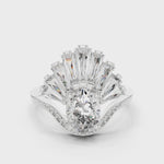 Oval & Baguette Crown Halo Diamond Engagement Ring 3.14 CT | Royal Peacock Cathedral Ring